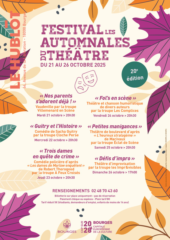 Le festival « Les Automnales du Théâtre » promet une semaine riche en émotions et en rires. Cette 20ème édition met en avant une programmation variée - mêlant comédie, drame et spectacle musical – assurée par des compagnies de Bourges et du département.