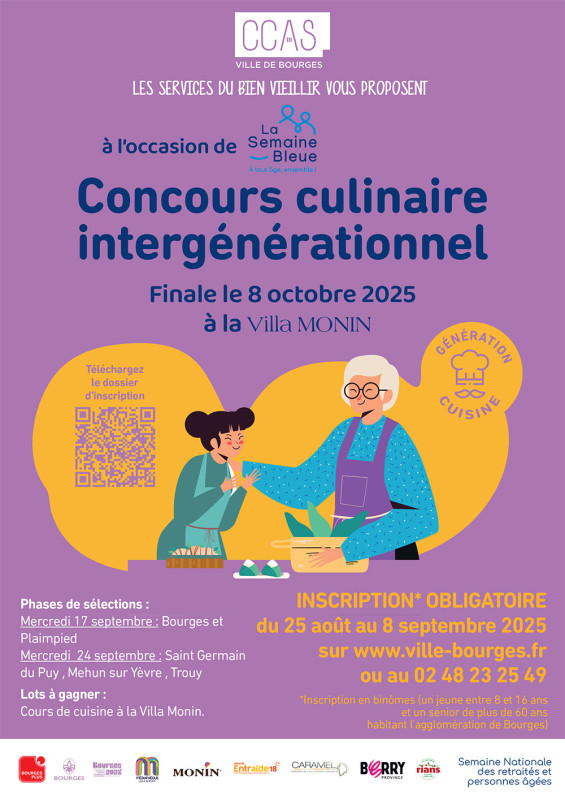 Le Centre de Ressources Territorial porté par le CCAS de la Ville de Bourges en partenariat avec l’association Caramel, organisent un concours culinaire intergénérationnel afin de promouvoir les liens entre les générations autour d’une activité culinaire créative et ludique.