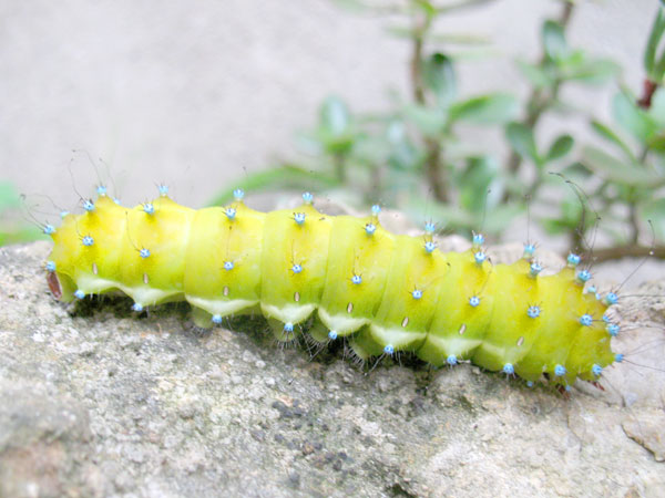 Les adultes volent d’avril à juin et n'ont qu'une durée de vie d’une semaine. Le mâle porte des antennes plumeuses très développées, celles de la femelle sont filiformes. Elle est capable d’attirer les mâles en émettant des phéromones que le mâle repère jusqu'à 5 km. Les œufs sont pondus sur des arbres à feuilles caduques, surtout sur les arbres fruitiers en ville, d'où émergeront de magnifiques chenilles d’un vert pomme aux tubercules (allant du bleu turquoise au violet) et surmontés de longs poils. Vous pouvez observer ces chenilles d'une douzaine de centimètres même au cœur de la ville de Bourges de juillet à août.