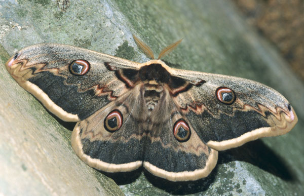 Avec une envergure de 15 cm, Saturnia pyri est le plus grand papillon de nuit d’Europe. Quand il ouvre ses larges ailes décorées de quatre ocelles, il doit impressionner les prédateurs éventuels tant elles simulent des yeux ouverts.
