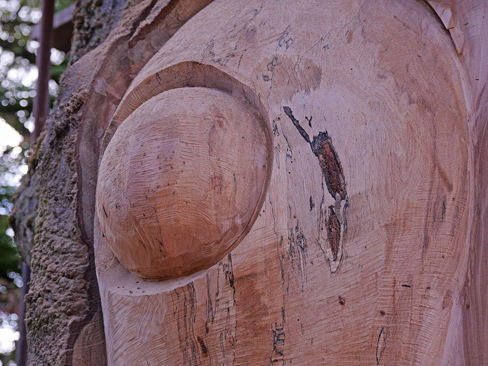 Au pied du Hêtre une grosse charpentière non sculptée a été débitée et laissée au sol. La vie naturelle est un cycle et ainsi même mort, cet arbre continue à participer au cycle du vivant, venant offrir un abri à une biodiversité différente.