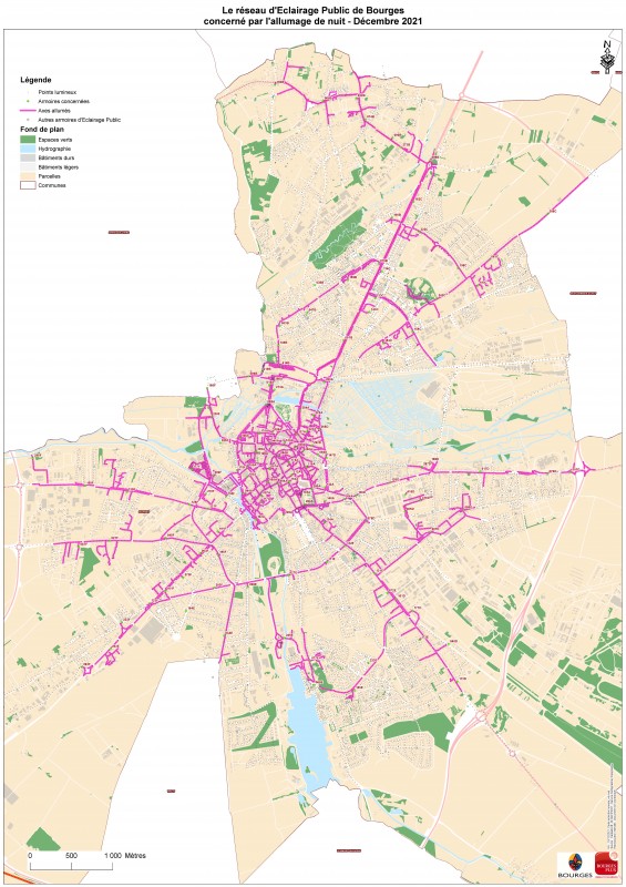 Carte de l’extinction de l’éclairage public de BOURGES4 enjeux principaux