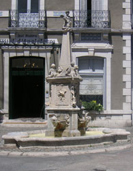 fontaine des quatre piliersCette fontaine a été réalisée en 1894 par Monsieur Bedeau, architecte, après un legs de Pierre-Alfred Lebon, juriste, ancien procureur impérial et conseiller à la Cour d’appel de Bourges.