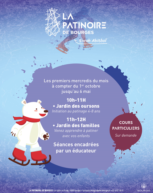 Le jardin des oursons accueille les enfants de 3 à 6 ans, pour leur permettre de découvrir le patinage avec un éducateur à leur rythme (Inscription à la séance par mail patinoire.bourges@ville-bourges.fr)